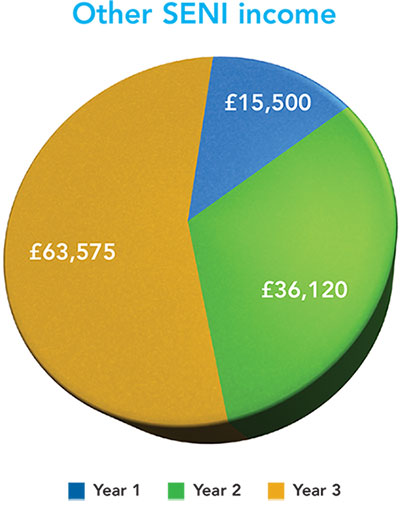 Despite not being outlined as a target, income was generated by SENI from a range of services between 2012/13-2014/15 and the analysis conculded that the Department was “contributing to, rather than fully” SENI activity. Over the period, SENI has increased its level of other generated income from £15,500 in year one to £63,575 in year three.