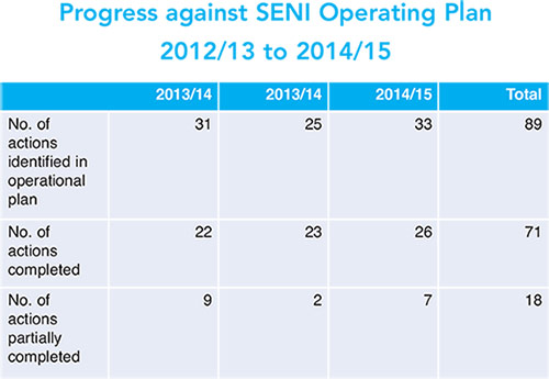 Conclusions from one-to-one interviews carried out by the Department with 10 key stakeholders in the sector found: “It was considered that SENI punched above its weight and has built good relations with other regional networks. However, a view was expressed that SENI should be more innovative and challenge government and that other representative bodies were more effective particularly in their broad strategic approach and marketing.”