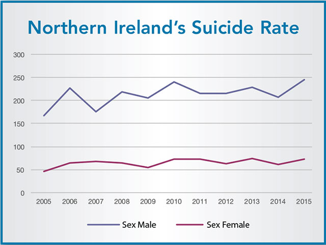 In 2015 the number of suicides in Northern Ireland spiked to 318, the highest it has been since records began back in 1970 and 50 more deaths by suicide than the previous year. Clearly a fresh approach is needed. Protect Life, the original, provided direct investment to tackle suicide of £7 million and while being recognised as contributing to the three year average rate for Northern Ireland remaining unchanged in the last decade, the average suicide rate of 280 deaths each year remains “stubbornly high”.