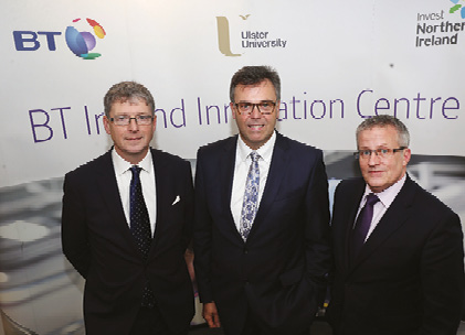 Howard Watson, CEO of BT Technology, Service and Operations, with Alastair Hamilton, CEO of Invest NI, and Ulster University Vice-Chancellor, Professor Paddy Nixon at the launch of the multi-million pound BT Ireland Innovation Centre in Belfast.