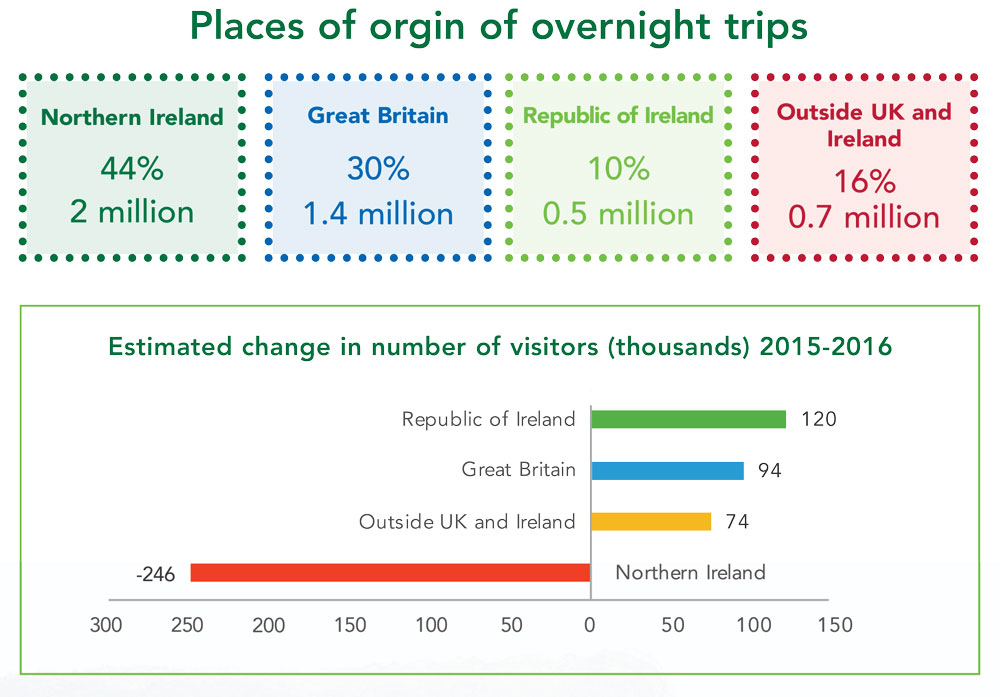 Statistically, the overall tourism figures for 2016 largely resemble the figures for 2015, however, a range of economic and political factors have led to a shift in where visitors to Northern Ireland are coming from and how much is being spent.