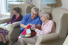 Each year, the home takes a group of residents to a local primary school where they talk about their experience of the Second World War. Linda Wray explains: “When the children finish the projects, the residents actually mark the projects and the kids come and spend the day here.” They arrive dressed as evacuees and have a quiz and sing-along with the residents. This is appreciated by the residents and it also teaches the children about respect for older people and life in a care home.