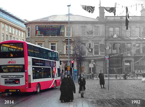 The passage of time’s effect on some well-known street scenes across the province is being recorded in a new project by the Public Record Office of Northern Ireland. Archived photos from the early 1900s have been merged with views of the same locations in the present day.