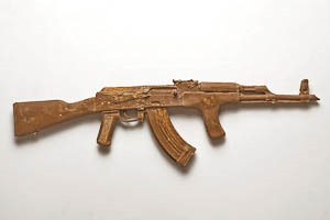 I managed to get access to an AK47 which had been used in Northern Ireland. I moulded it into a work of chocolate. This AK47 – the freedom fighter’s weapon of choice – was that idea of the romantic hero and I wanted to subvert that.