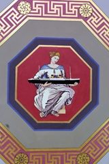 Arabesques on the Strangers’ Gallery ceiling depict the province’s strongest industries in the 1930s: linen, shipbuilding and agriculture. Northern Ireland’s history is charted in the chamber’s painting, of the Parliament’s opening in 1921 (at Belfast City Hall) and the present Assembly in 2003.