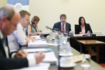 Employment and Learning Committee members prepare to question Minister Stephen Farry in Room 29. The library (directly behind the Great Hall stairs) is now a fairly confined space after an annexe was converted into a committee room. Accommodating the 18 committees is difficult but also essential as they carry out most of the House’s work. Bound volumes of Hansard, statutes, reports and history books take up the shelves. Lighter reads include the Lonely Planet guide to France.