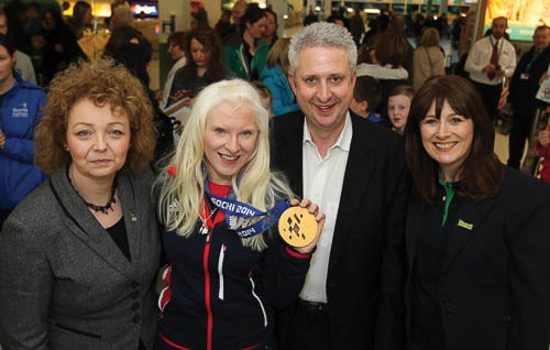 Kelly Gallagher winner of Britain's first ever Winter Paralympic gold with victory in the super-G event in Sochi returns home to Belfast.
