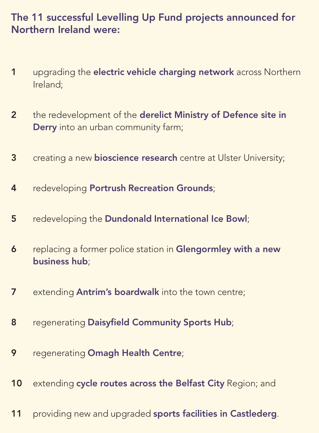 Outside of the Budget, Northern Ireland also received £50 million from the UK Government’s Levelling Up Fund, billed as a programme to invest in infrastructure that improves everyday life across the UK.