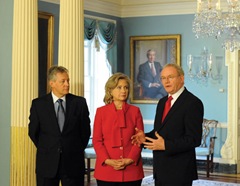 Robinson said: “The Northern Ireland Executive is determined to deliver economic stability.” He also thanked Clinton for her work with Northern Ireland. “Madam Secretary, you were there at every stage. When others patted us on the back and said ‘good luck’, you stuck with us,” he said.