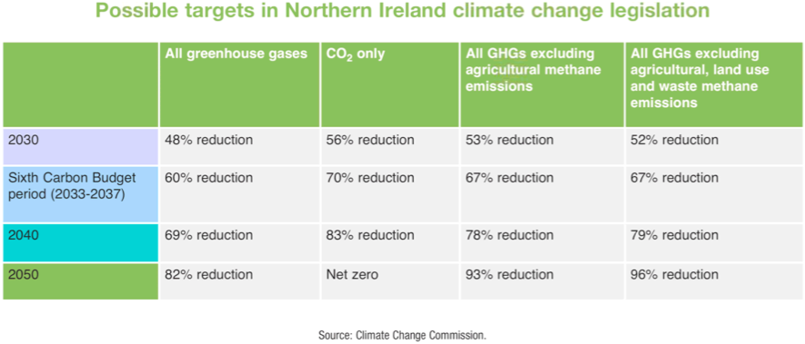 An 82 per cent target for carbon emissions in Northern Ireland has been advised by the UK Climate Change Committee (CCC).