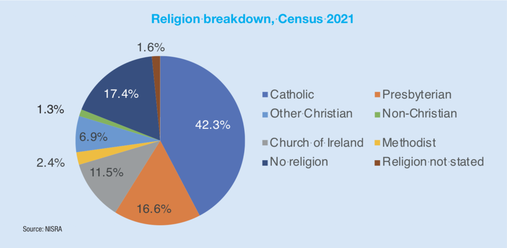 These figures outline arguably the biggest demographic change within Northern Ireland, which is that there is an increasing secularity among the population, particularly with younger