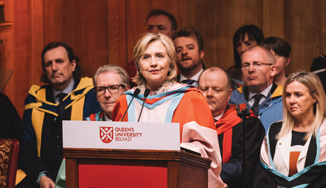 Queen’s University’s recent awarding of an honorary doctorate to Hillary Clinton boasted an attendance of civic leaders from across the region. However, remarks made by the former First Lady reflected criticism of a political class at perpetual loggerheads in the context of Brexit and the absence of a Stormont Executive. agendaNi reports.