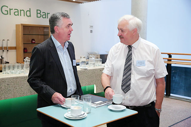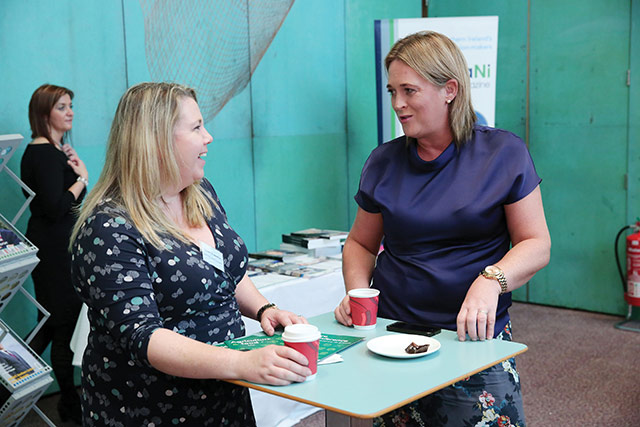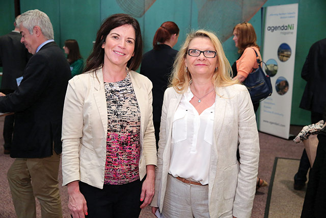 Malachy McAleer, South West College and John Gilliland, Devenish Nutrition Ltd.Michelle Hawkins, PKF-FPM Accountants Limited and Patricia O’Brien, Causeway Coast and Glens Borough Council.Conference chair Mark Carruthers with speakers Dagmar Shiek, Queen’s University; Ruth Taillon, Centre for Cross Border Studies and Jane Morrice, European Economic and Social Committee.Martin Kelly, Strategic Planning and John McMullan, Bryson Charitable Group.Paula Stephens, The Merchant Hotel and Sarah Mason, Women’s Aid Federation.Seamus McAleavey, NICVA asks a question of the political panel.