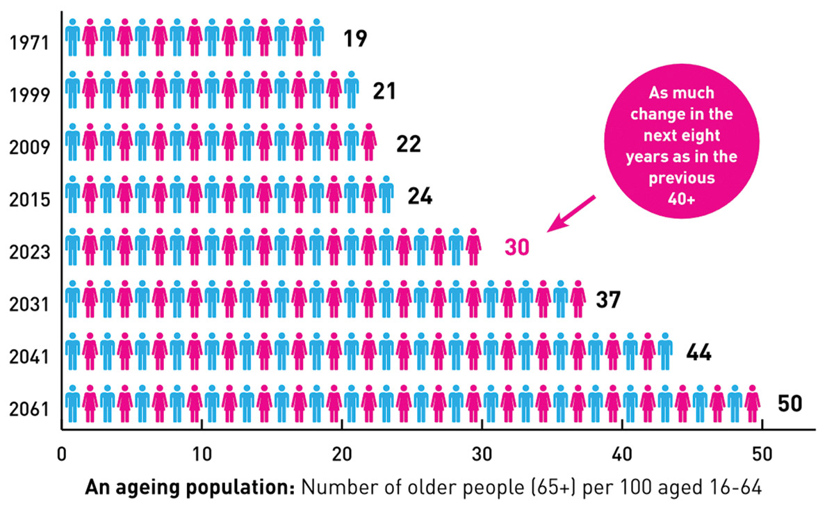 Northern Ireland’s demographics is changing rapidly and by 2030, the number of people aged over 65 is expected to be double what it was in the year 2000. This is significant when considering that citizens over the age of 65 currently account for more than 40 per cent of all health and social care spending, despite only making up 14 per cent of the population share.