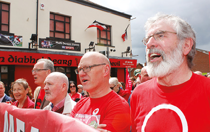 Gerry Adams and party colleagues pictured at an Acht na Gaeilge protest in Belfast’s Gaeltacht Quarter.