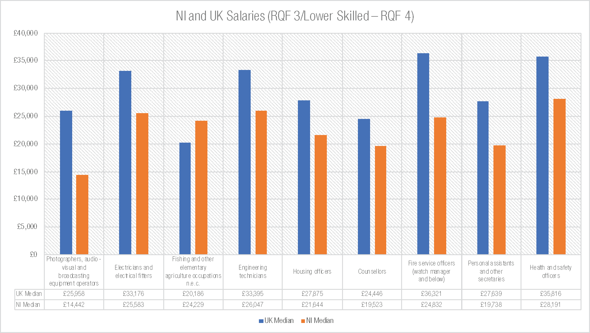 The median pay for EU26 workers in Northern Ireland is £18,000, significantly below the £25,600 threshold. The importance of access to migrant workers from the UK was highlighted by a report by the Department for the Economy in March 2018, which calculated that all employment recovery in Northern Ireland over the past decade was driven by migrant workers from the EU.