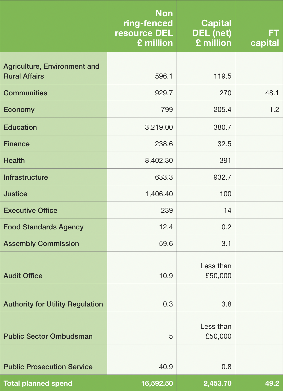 • Department for Infrastructure: £5.2 million resource and £17.6 million capital