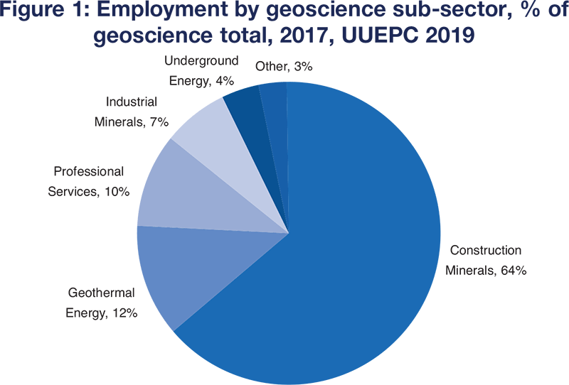 Eight geoscience sub-sectors were analysed including; construction minerals; energy minerals; geothermal energy; groundwater; industrial minerals; metals; professional services; and underground energy storage.