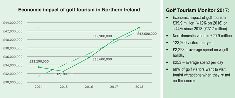 The 2015 launch of Northern Ireland’s Golf Tourism Strategy set out ambitions to grow the value of golf tourism to £50 million per year by 2020, recognising that golf visitors tend to stay longer and spend on average three times more than the average visitor.