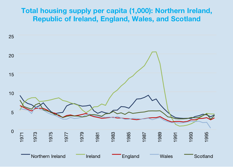 Contrasting housing supply in the Republic of Ireland, Northern Ireland and the rest of the United Kingdom identifies a number of substantive factors impacting the supply side of the housing market, not least production costs, regulatory environments and the economic dynamics, across the different markets.