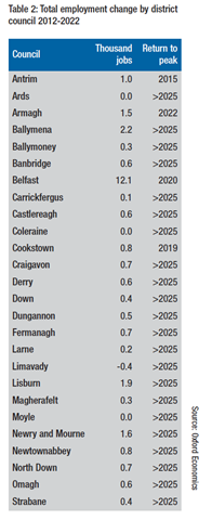 The post-RPA environment is still relatively unknown – roles and responsibilities have largely been assigned but there is no hard evidence on the impact it will make on economic growth. Therefore, we must remain circumspect with regard to what, if any, impact it will make on alleviating the clear pressures on the majority of Northern Ireland’s localities, as highlighted in Table 2.