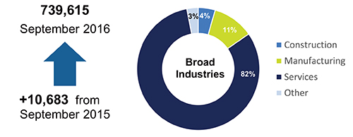 Although services had the largest number of employee jobs increase, the construction sector had the largest percentage increase, up 5.2 per cent.