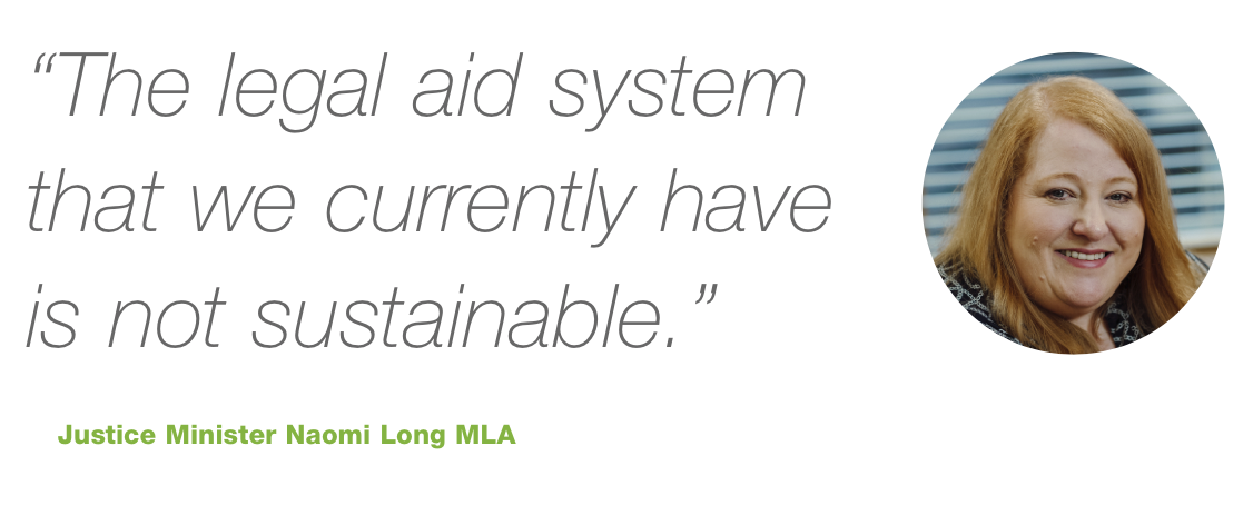 Among the most contentious issues facing the department is legal aid reform. Long says that change is unavoidable, framing the issue as one of sustainability rather than ideology. “The legal aid system that we currently have is not sustainable,” she says. “It is not sustainable financially, and it is not sustainable in terms of the way it delivers justice.”