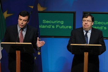 In a week where a debate raged in the Republic following an Irish Times editorial suggesting that the country had given away its sovereignty by asking for a €85 billion loan from the International Monetary Fund, the EU and Britain, the plan was announced in a bid to win approval from the EU and the IMF. Economic and Monetary Affairs Commissioner Olli Rehn welcomed the austerity package.