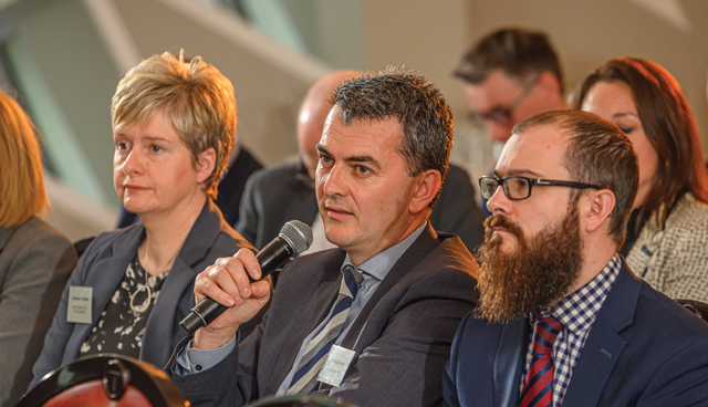 Steven Agnew, Northern Ireland Renewables Industry Group, asks the panel a question.