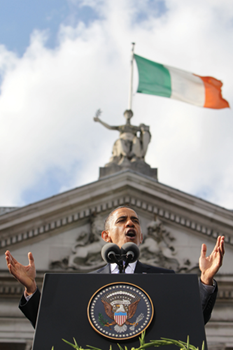 “Is féidir linn – yes we can” was the rallying call of President Barack Obama in his address to the estimated 50,000 who packed into Dublin’s College Green and nearby Dame Street to catch a glimpse of one of Ireland’s most famous newly discovered descendants.