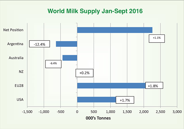 “There is a strong link between oil and dairy prices on international markets,” he explains. D’Arcy points out that 2016 was the first year for some time when total global dairy output has not increased: “Given the dairy output reductions now taking effect in the EU and New Zealand, it looks like we could be seeing a zero gain in milk output around the world. This will have a stabilising impact on prices.