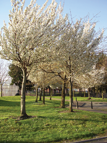 Further down, the right side of Downing Street opens up into a small patch of greenery (pictured). The unnamed park’s white cherry trees look tranquil on a bright spring evening as two middle-aged women walk by, chatting loudly on their way home from work.