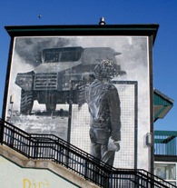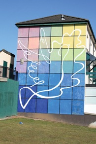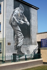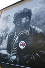 Tourists often stop by to view the murals, the French and Italians noting there was nothing like in it their illustrious art history while German and Dutch visitors enquire about planning permission and red tape. Most have made their way from Belfast and remark on .how different the murals look compared to that city’s republican and loyalist ones.