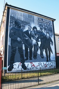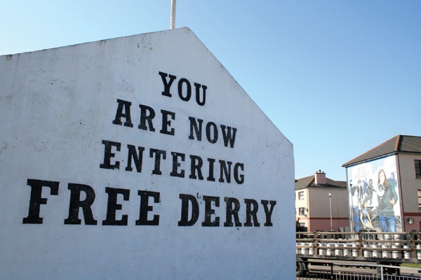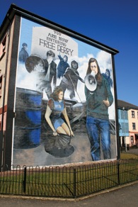 Unlike many of Northern Ireland’s murals, those along the gables of Derry’s Rossville Street tell a place’s history rather than taking sides in the Troubles. The work of The Bogside Artists – Tom Kelly, his brother William, and Kevin Hasson – has changed the face of the former trouble-spot over the last 16 years.