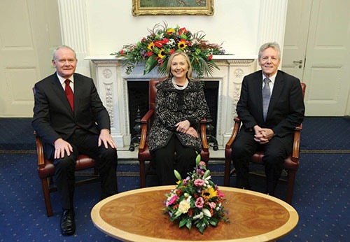 Clinton’s visit in November came 17 years after her first arrival, as First Lady. In a scene that would have been impossible at that time, David Trimble, John Hume, Ian Paisley and Gerry Adams joined the Secretary of State at a reception in the Titanic Belfast building, hosted by the Ireland Funds. The contribution of Senator George Mitchell was also acknowledged.