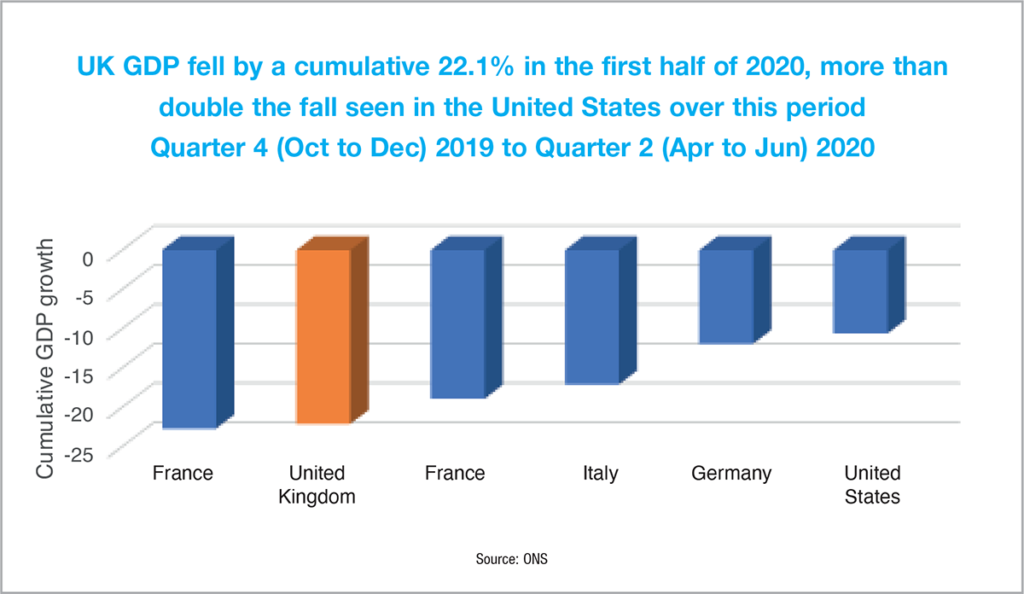 While it has been the case that the UK’s economic activity has improved over the summer months, narrowing the gap between the UK and of its neighbouring European countries, Prime Minister Boris Johnson warned in early September that the UK’s economic outlook was “about to get tougher”, with Chancellor Rishi Sunak admitting tax rises would be required to pay for the economic chaos wrought by coronavirus.