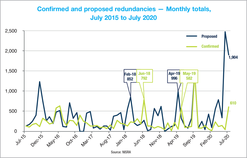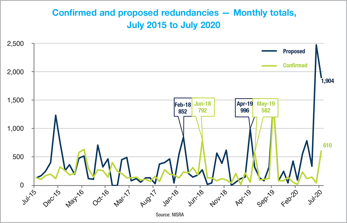 The trend of rising unemployment and job losses is expected to continue until 2022, at the earliest. In late August the Department for the Economy said that a “conservative estimate” was for more than 100,000 unemployment claimants by the end of 2020.