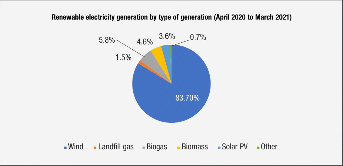 Roughly 3,413 GWh were generated from renewables in the 12 months to March 2021, in the context of overall energy consumption of some 7,359 GWh.