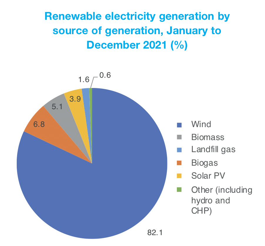 Published by the Department for the Economy (DfE) in March 2022, Electricity Consumption and Renewable Generation in Northern Ireland: Year ending December 2021 outlines the percentage of electricity consumption in Northern Ireland generated from renewable energy sources and the type of renewable generation deployed.