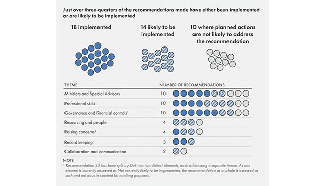 “We concluded that actions planned in response to 10 recommendations were unlikely to address the concerns of the Inquiry in full. The remaining 14 recommendations relate to areas where planned action will take some time to embed but will, in our view, eventually address the Inquiry concerns.”