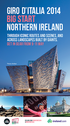 Tourism Ireland undertook an action-packed promotional programme in key markets around the world, to leverage the tourism potential of the recent Grande Partenza or ‘Big Start’ of the Giro d’Italia in Northern Ireland. An extensive programme of activity included advertising (on and offline), publicity and public relations, e-marketing and social media, as well as consumer and trade promotions.