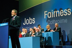 On southern matters, delegates had agreed to leave the option of going into coalition open but a special conference would be needed before that took place. Reacting to the view that Sinn Féin cannot be trusted in government, McGuinness stated: “Wake up and look north. We are in government, we are taking the hard decisions and we are doing a doing a good job to boot. Their attitude is arrogant, it is partitionist and it is absolutely unacceptable.”![]()