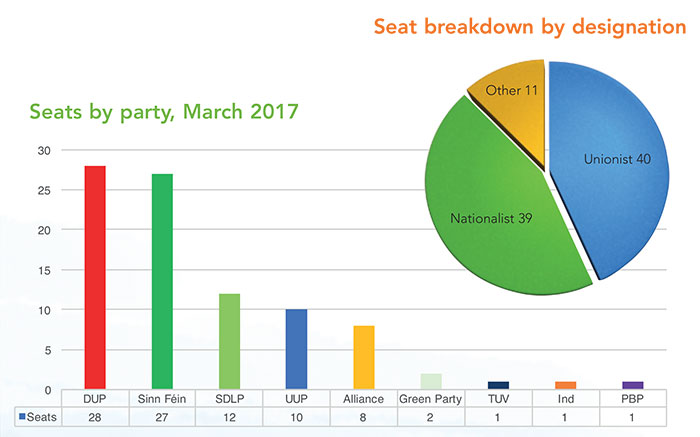 Politics at Stormont underwent a watershed moment on 2 March when, for the first time in the history of Northern Ireland, a unionist majority failed to be returned by the electorate. While significant gains were expected to be made by Sinn Féin because of the circumstances surrounding the recent snap election, predictions that they would reduce the previous 10 seat gap between themselves and their former Executive partners, the DUP, to just one seat were not expected.