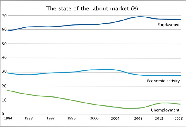 Inactivity has fluctuated around the 30 per cent mark since the first statistics came out in 1984. This, in turn, has had an obvious knock-on effect for Northern Ireland’s employment rate (currently 67.4 per cent). The Executive wants to raise this to over 70 per cent by 2023. While that would represent only a small percentage increase, it would make a significant difference in the lives of new employees, be an important symbol of economic progress, and take Northern Ireland out of the UK’s ‘bottom league’ of deprived regions.