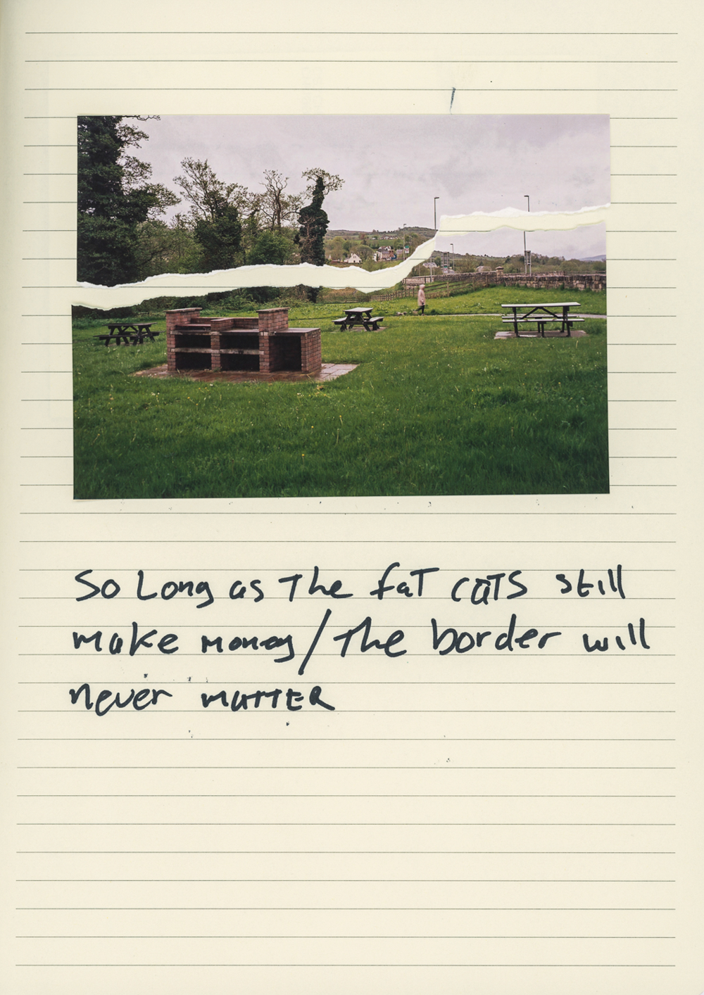 Photographer Tristan Poyser spent two years travelling and photographing the border in a time of uncertainty following the invocation of Article 50 in March 2017. Describing the border as “an imaginary boundary”, Poyser’s work, exhibited by Belfast Exposed until 27 April, highlights the materiality of the border through a physical tear “making the invisible, visible”.