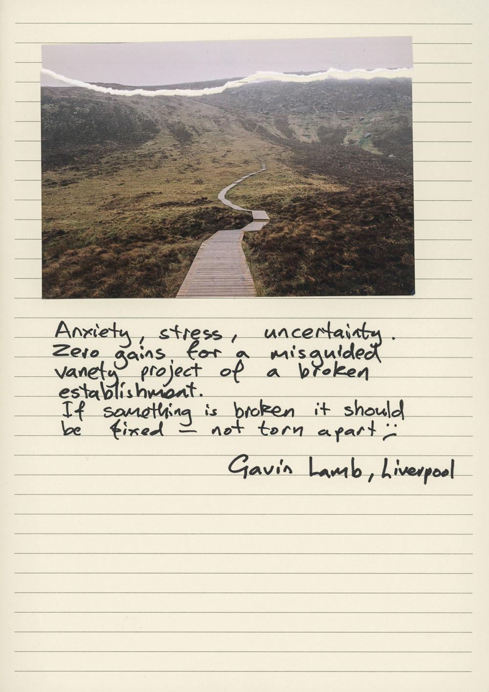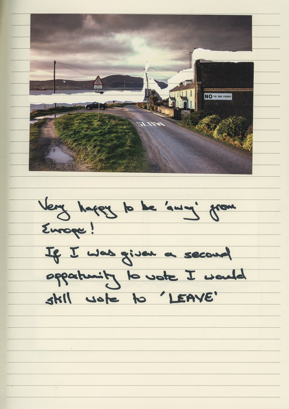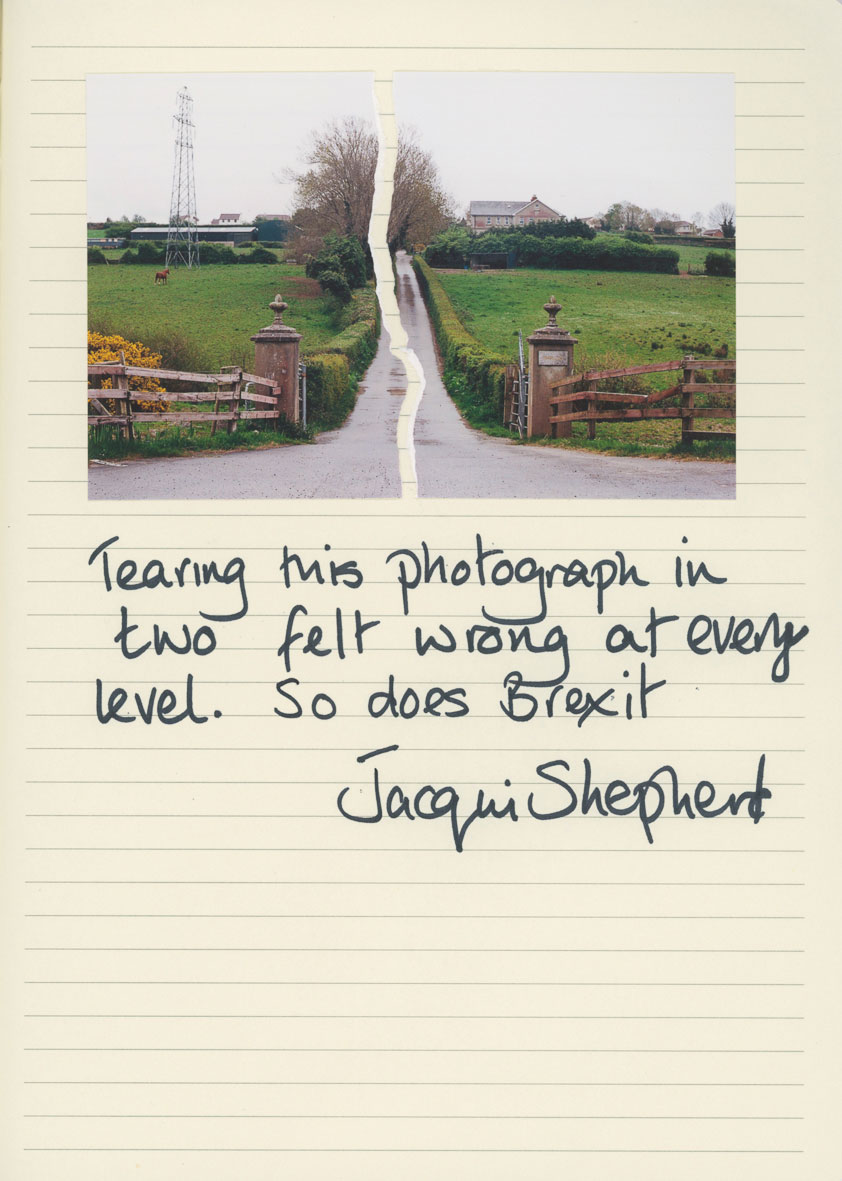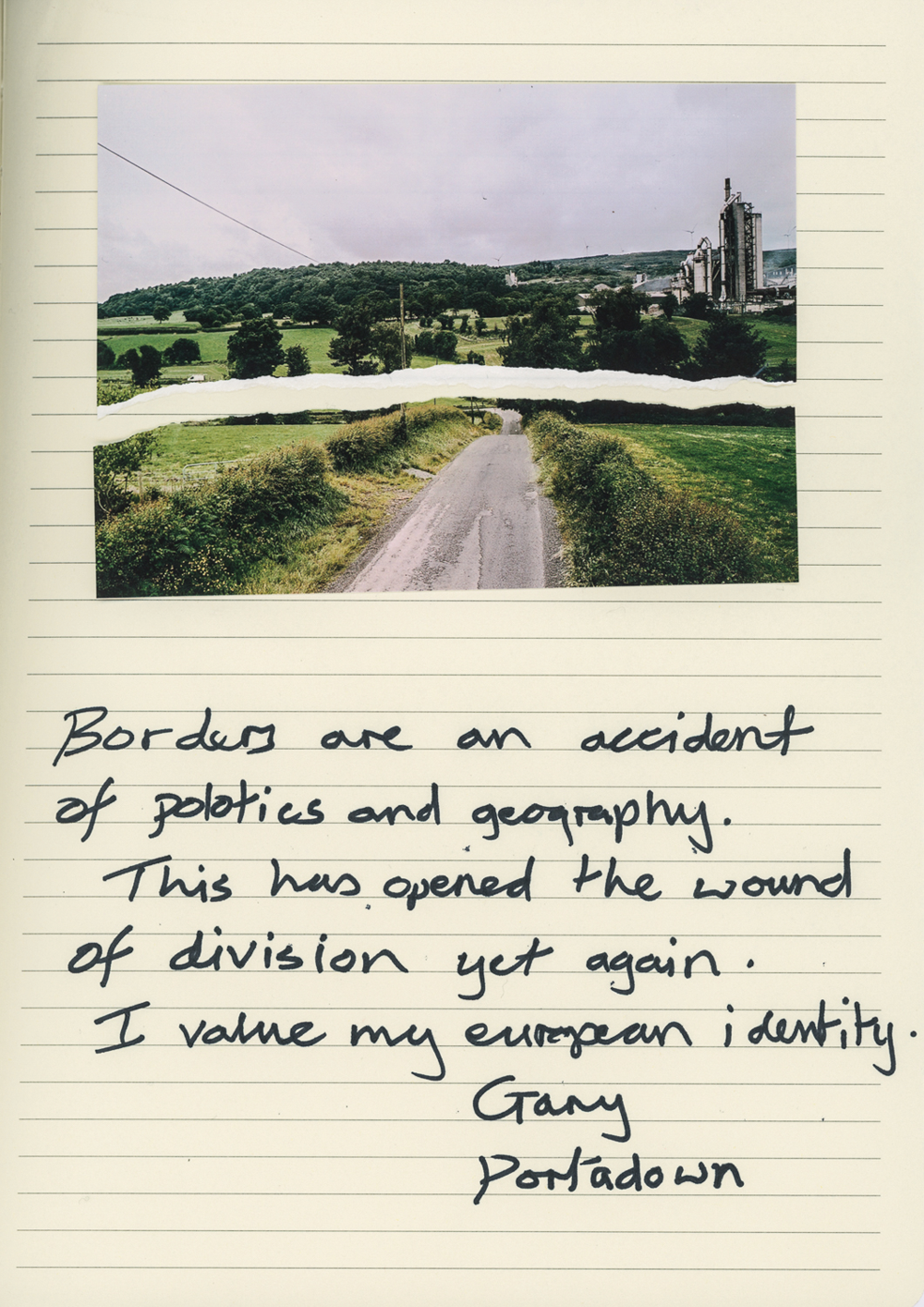 As part of the exhibition, Poyser also invited the public to consider the impact of their referendum vote, on those living on the Irish border and how it will impact the future. He asked them to tear the photograph where they think the border is and write a comment about the two-year period of uncertainty and Brexit.