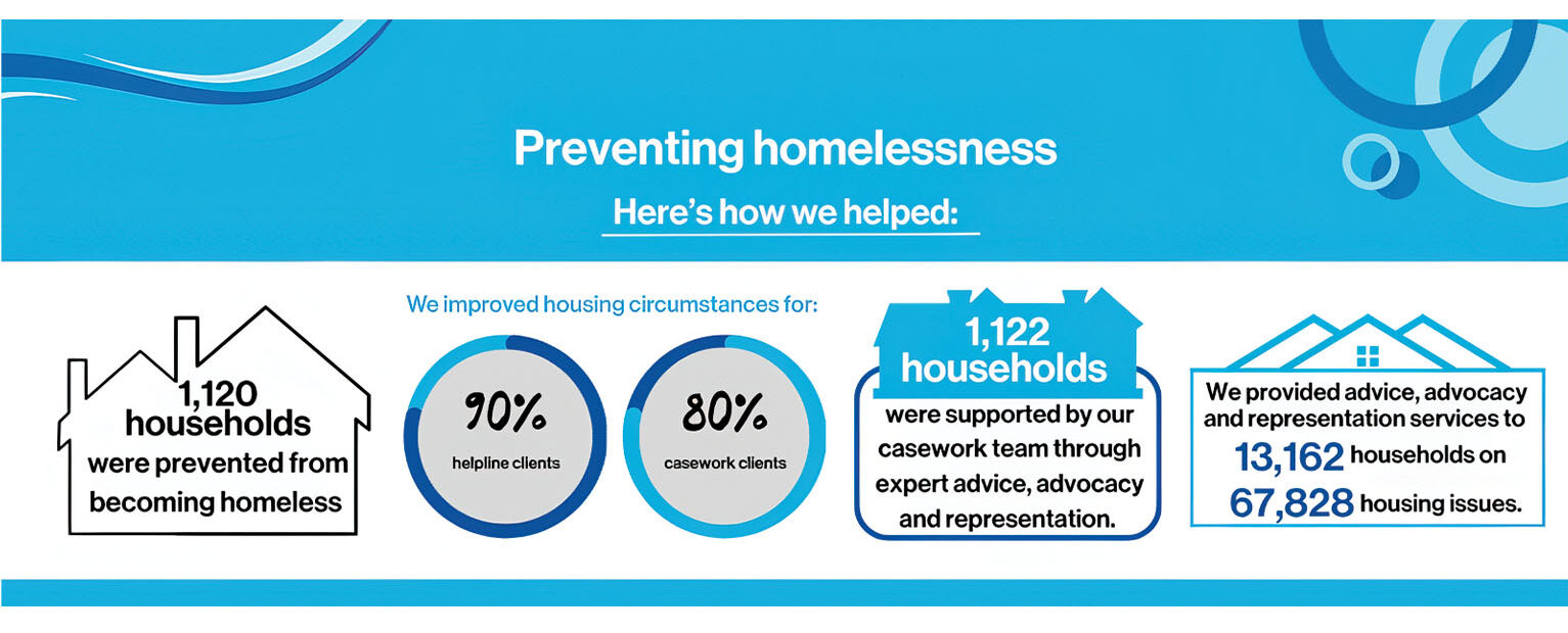 For over 60 years, Housing Rights’ work has been rooted in preventing homelessness. Our independent advice and advocacy are shaped by the people who come to us for help – people navigating housing insecurity across all tenures, including an increasing number of private renters facing affordability pressures, poor conditions or the risk of eviction.