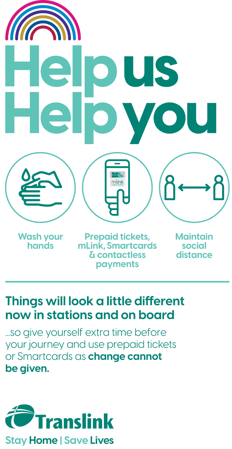 Our dedicated teams, guided by Public Health Agency advice, have been working hard to maintain public transport services for key workers and we have been proud to offer free transport to NHS and carer staff throughout the present crisis to help make their essential journeys a little easier.