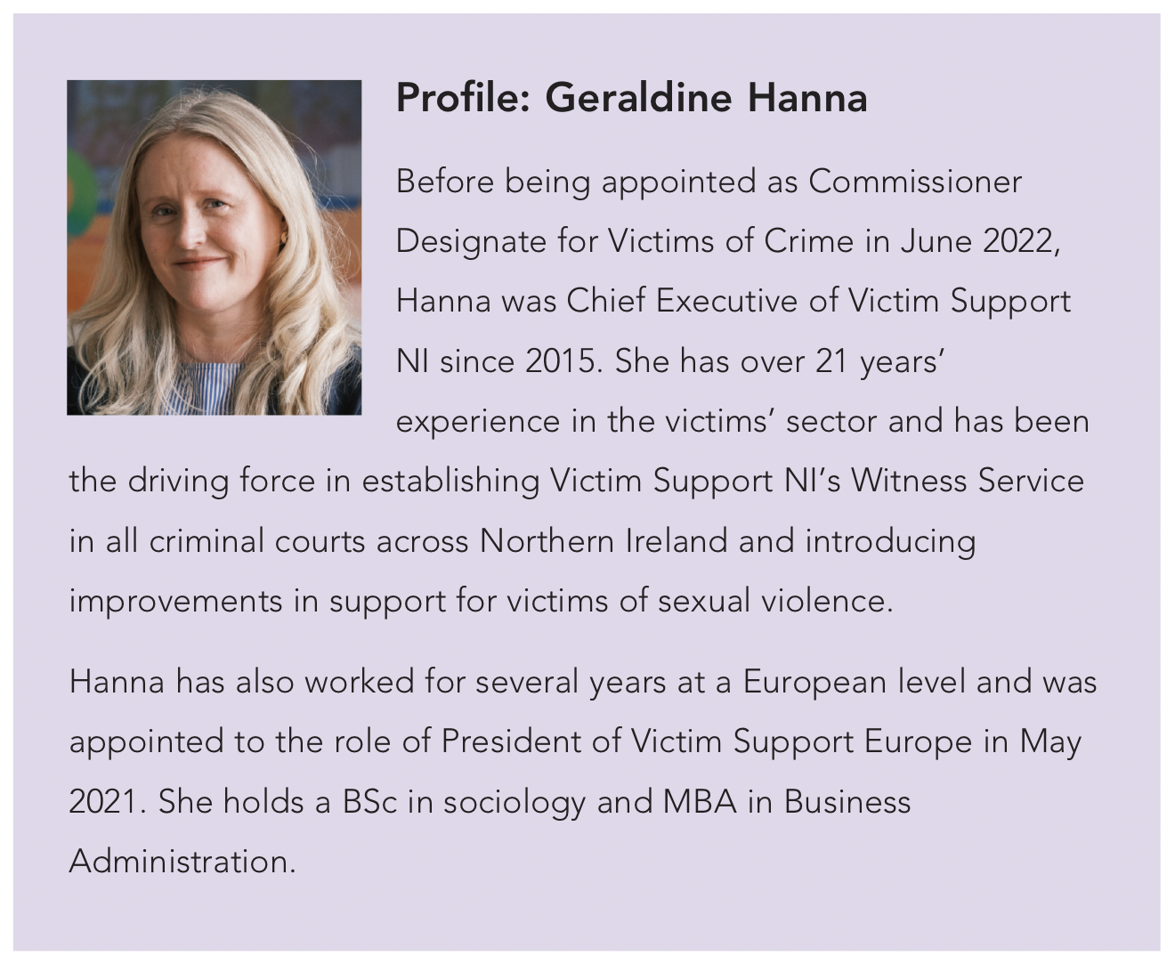 Hanna describes how this has been raised with her since she took up the post: “In my first week as Commissioner Designate I was introduced to the story of a young female who had been groomed, abused, and seriously sexually assaulted from the ages of 14 to 17.