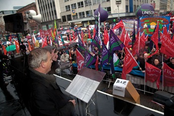 The good news is that thousands of people agree with this analysis, and demonstrated in the rain against those choices at Belfast City Hall. This argument is only starting.